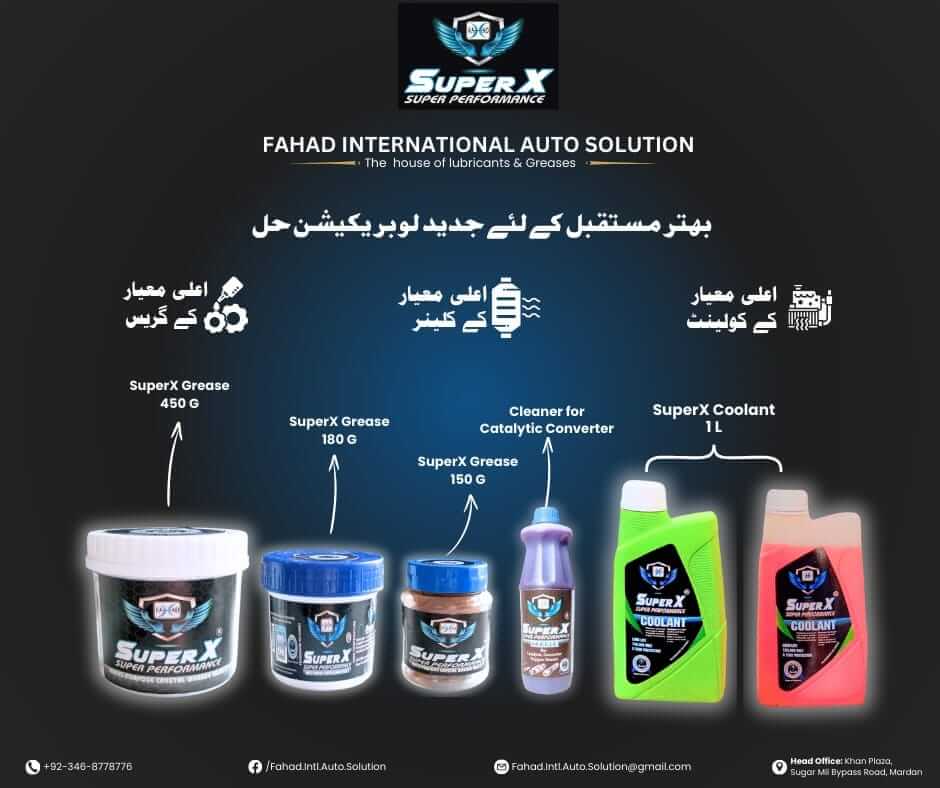 Fahad International Auto Solution-SuperX (PVT) LTD Established in 2020. A leading provider of high-quality lubricants and greases, catering to various industries such as automotive, manufacturing, and heavy machinery. Our commitment to innovation, quality, and customer satisfaction sets us apart in a competitive market.